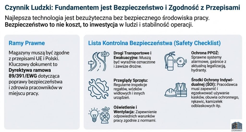 16. Standardy Bezpieczeństwa i Higieny Pracy: Zgodność z przepisami BHP to absolutna podstawa. Należy zweryfikować istnienie procedur bezpieczeństwa, dostępność środków ochrony indywidualnej (PPE), regularność audytów i szkoleń, a także odpowiednie oznakowanie dróg komunikacyjnych i ewakuacyjnych.