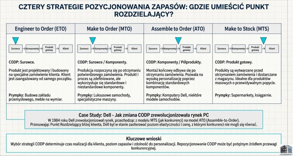 Lokalizacja punktu rozdzielającego jest ściśle powiązana z przyjętą strategią produkcji i realizacji zamówień. Wyróżniamy cztery podstawowe podejścia: